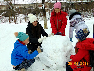 Крім проводження часу на свіжому повітрі, ліплення сніговика та ігрів, дітки разом з зав.бібліотекою взяли участь у вуличній акції "Зимові читання з Сніговою Бабою". Дітки запрошували перехожих приєднатися до них, рекламуючи діяльність бібліотеки. Книжкова виставка пропонувала переглянути дитячі книги та журнали. Безліч позитивних емоцій залишилось у дітлахів після зимової прогулянки.